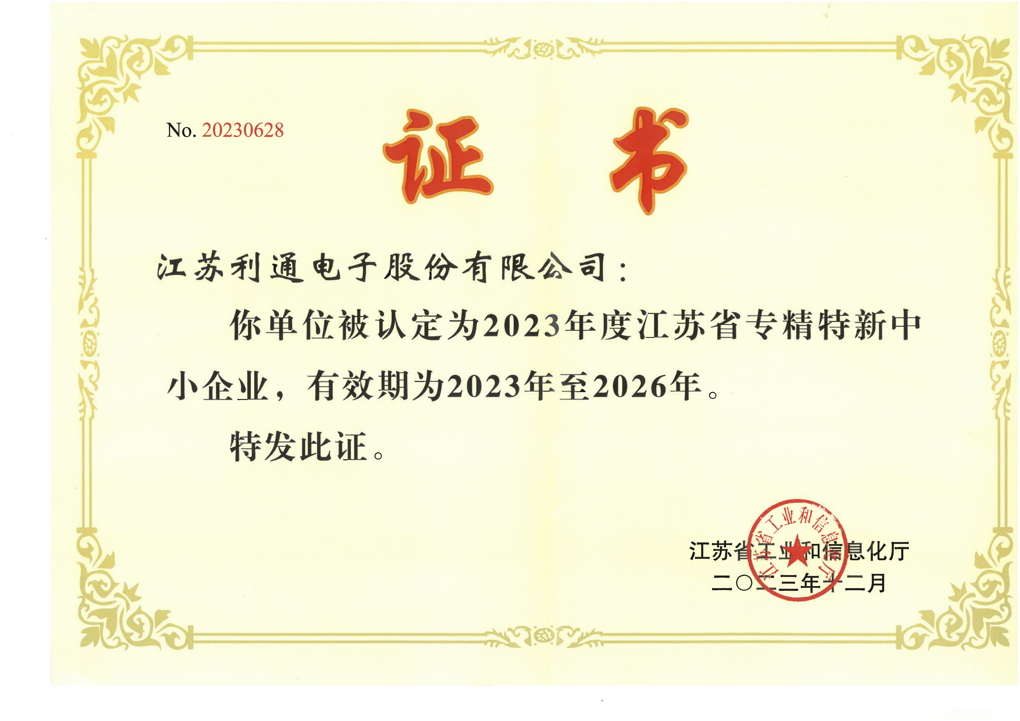 省级专精特新证书