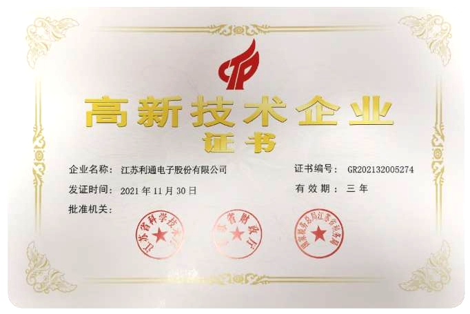 高新技术企业证书